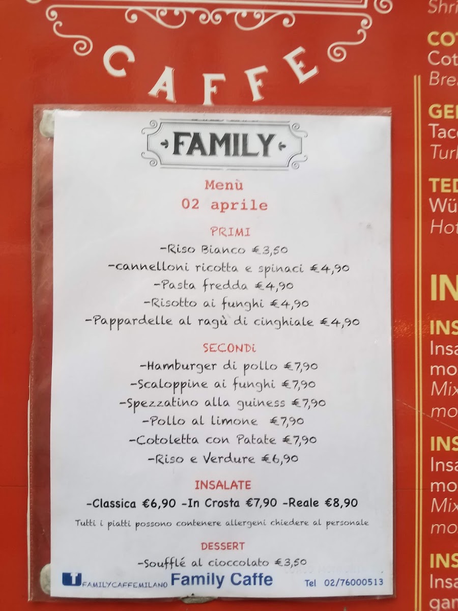 Family Caffè Milano Menu